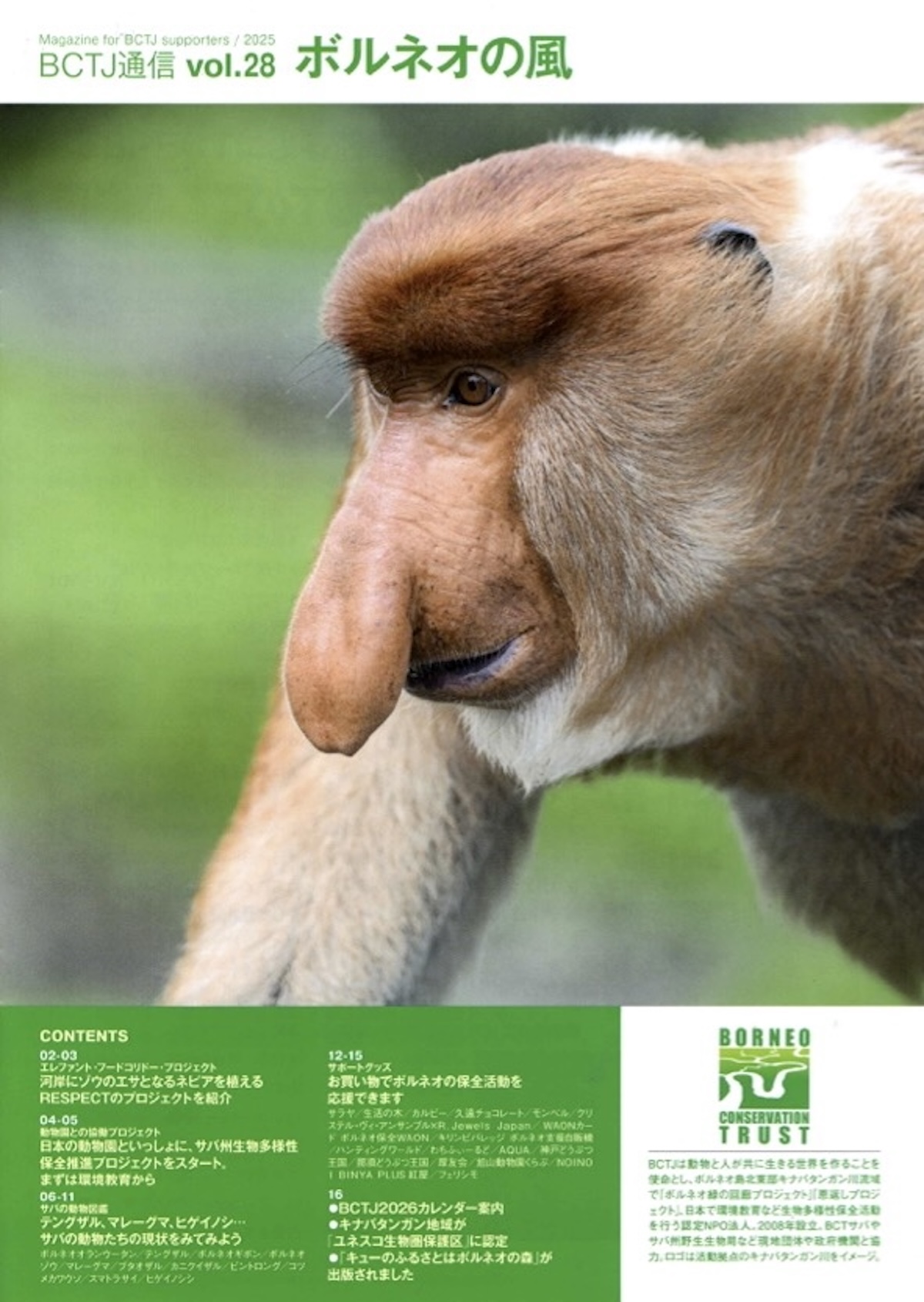 今号の特集はボルネオ島の動物たち。BCTJの活動が17年目を迎えるなか、野生動物を取り巻く環境も刻一刻と変化しています。IUCNレッドリストとあわせ、改めて私たちが守りたい動物たちのことをみなさまに知っていただく良い機会になると思います。