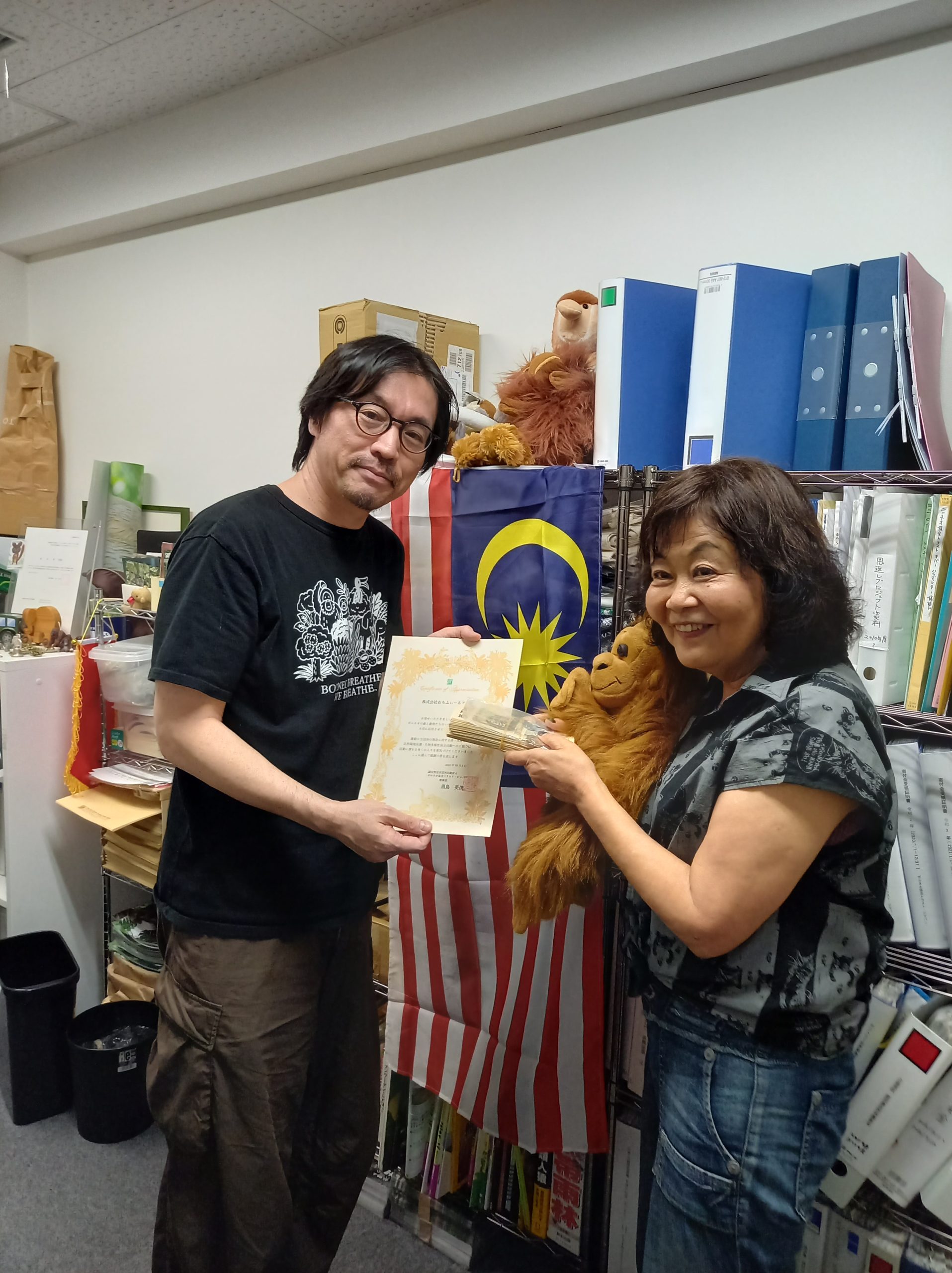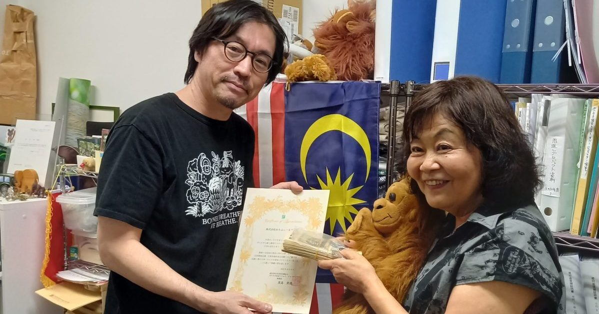池田あきこさんは過去4度ボルネオに渡り、ボルネオの森にすっかり魅せられました。ボルネオをテーマにした作品を何本も発表され、たくさんのチャリティグッズや原画展、オークションでの集まった支援金をご寄付をくださっています。これまでに緑の回廊の対象地に「ダヤンの森1〜5」を取得。「ダヤンの森6に向けて頑張ります!」とお話くださいました。