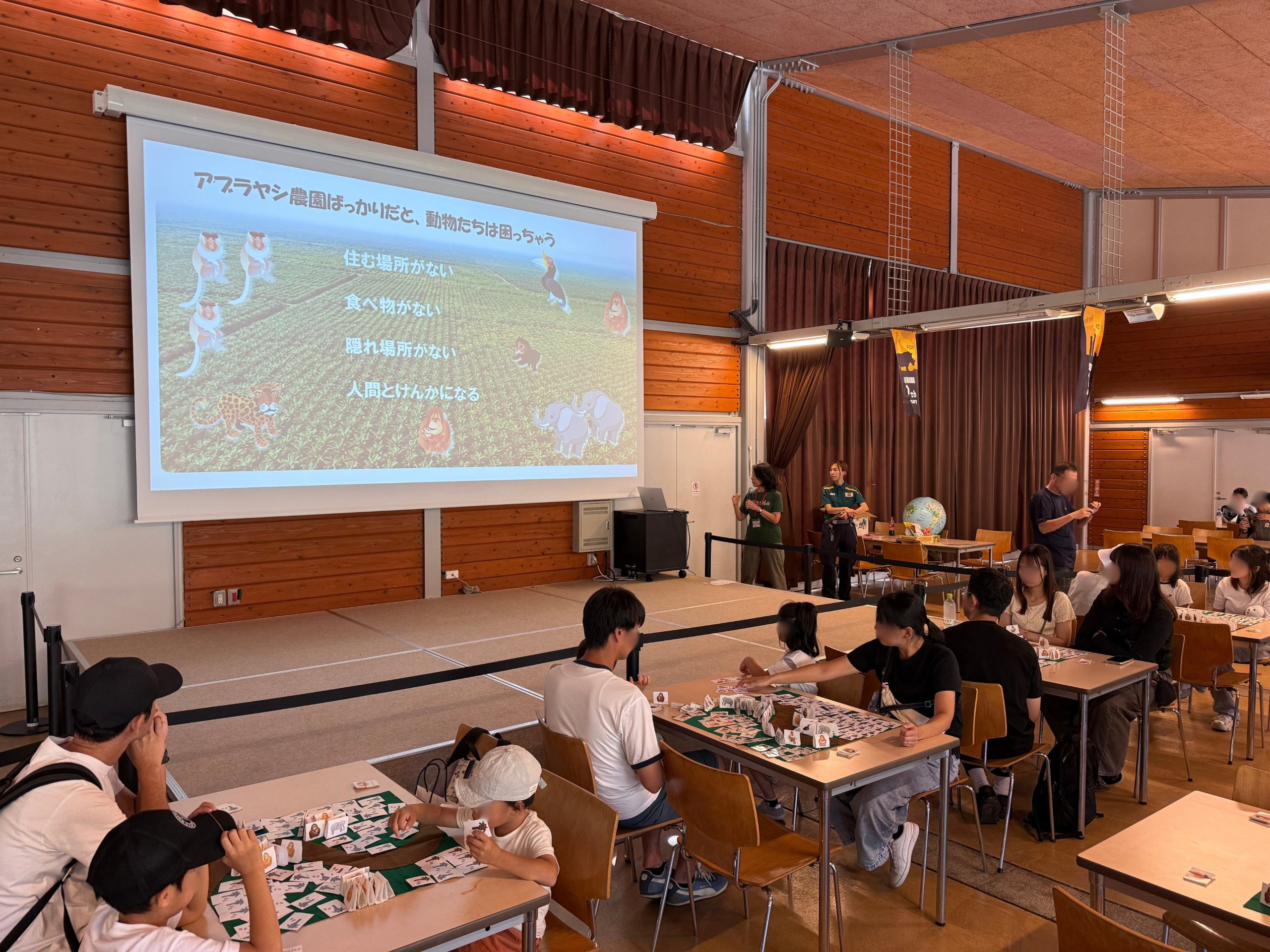 普段私たちが食べている食品や使用している日用品が、森の減少につながり野生動物たちの住処が減っていることをゲームを通じて実感していただきました。遊びながら学べる内容で、小さなお子さんも楽しみながら考えるきっかけになったと思います。