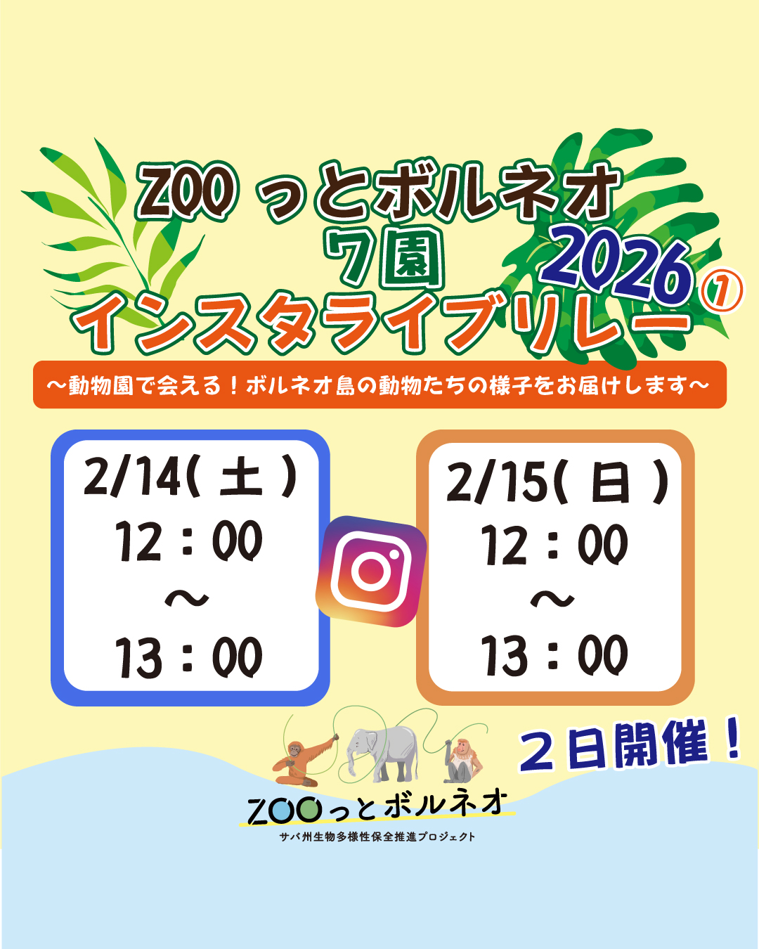 「ZOOっとボルネオ」7園インスタライブリレー2026が行われます。