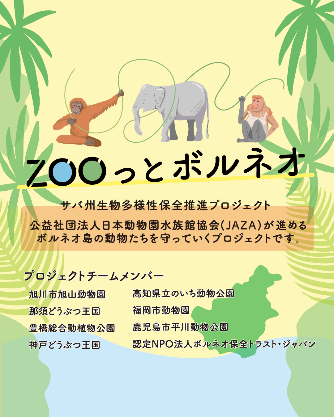 「サバ州生物多様性保全推進プロジェクト」(名称:ZOOっとボルネオ)は、(公社)日本動物園水族館協会が進めるプロジェクトで、ボルネオ島で暮らす動物たちを守るための取り組みを行っています。